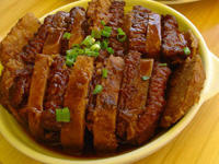 带皮猪五花肉l000克,梅干菜200克,酱油20克,清油l000克。