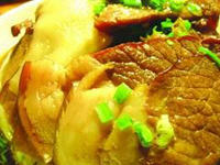 此菜腊香浓重,咸甜适口,色泽红亮,柔韧不腻,稍带厚汁,且味道互补,各尽其妙。