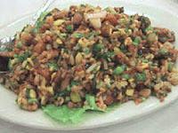 3、将炒锅上火,放油,油七成热,投入肉条。至微黄时用漏勺捞起;再将油倒出,投入另一半山楂,略炸后,再将肉干倒入锅中,反复翻炒,至熟,装盘时淋上香油,撒上味精、白糖,拌匀即可。