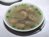 3、烧好开水,将包好的馄饨放入锅内,煮约三四分钟,一见馄饨浮起立即捞出,放入热清汤碗内,撒上胡椒粉,紫菜,浇上麻油即好。