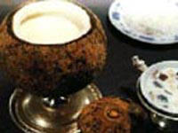 鲜椰子1个,鲜海虾、生鱼肉、鲜鱿鱼、鲜带子各100克,洋葱约75克,甘笋50克。