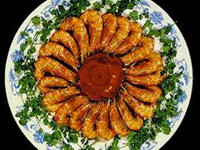 2、油烧至七成热,放明虾,两面煎至红色,虾肉收缩时捞起,随即将姜末、葱末、酒酿下锅煸香,加酒、精盐、胡椒粉、清水,放入明虾,加盖,旺火焖烧二三分钟,移小火略窝片刻,至明虾断生,再加番茄酱沙司、蜂蜜、香葱末,用旺火收紧卤汁,至卤汁将烧干时,下油,继续再烧,至卤汁收干时,淋入米醋,出锅将明虾排列在盘中即可。