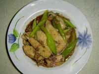 水发鱿鱼300克。瘦猪肉5 0克。泡菜25克。泡辣椒适量。