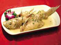 色泽乳白,肉质细嫩,卤汁稠粘,滋味鲜美