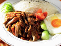 2、温油将牛肉在油中过油泡熟捞出,洋葱用油炒软,调入精盐及味精待用;