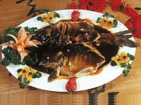 4、原汤加糖、醋、湿淀粉各50克,烧开起泡后浇在鱼身上即成。